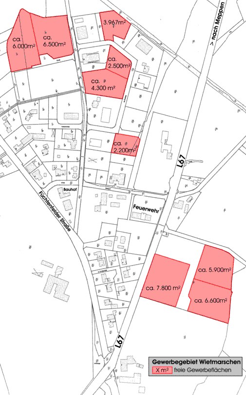 Die Gemeinde Wietmarschen kann im Ortsteil Wietmarschen Gewerbeflächen in einer Größenordnung von 5 ha anbieten. Es handelt sich um vollerschlossene und sofort verfügbare Grundstücke für Gewerbe- und Industrieansiedlung in nahezu jeder von Ihnen gewünschten Größe.